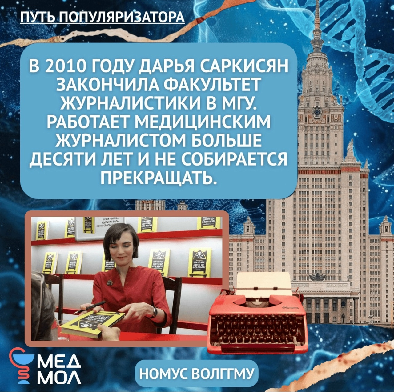 Героиня сегодняшней рубрики #путь_популяризатора — известная журналистка и популяризатор медицины Дарья Владимировна Саркисян.